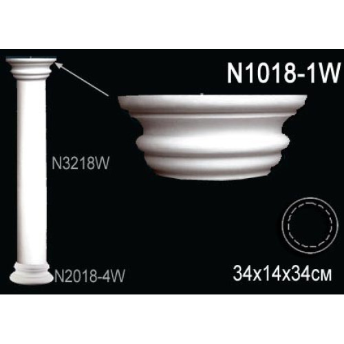 Капитель колонны N1018-1W из полиуретана Перфект Характеристики товара: Материал - из полиуретана. Высота - 14. Под покраску - Да. Коллекция - Перфект. Внешний диаметр - 34..