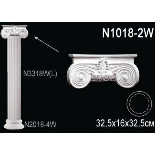 Капитель колонны N1018-2W из полиуретана Перфект Характеристики товара: Материал - из полиуретана. Высота - 16. Под покраску - Да. Коллекция - Перфект. Внешний диаметр - 32.5..