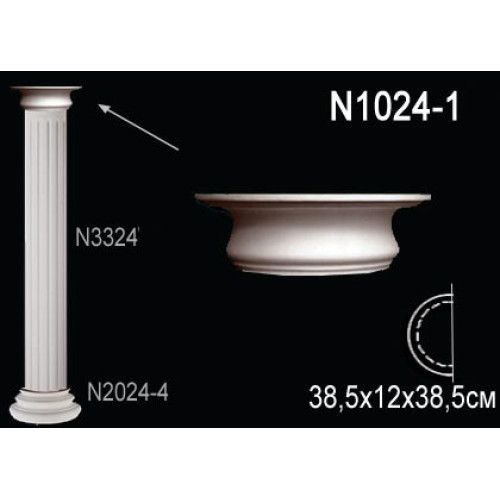 Капитель полуколонны N1024-1 из полиуретана Перфект Характеристики товара: Материал - из полиуретана. Высота - 19.3. Глубина - 12. Под покраску - Да. Коллекция - Перфект. Внешний диаметр - 38.5..