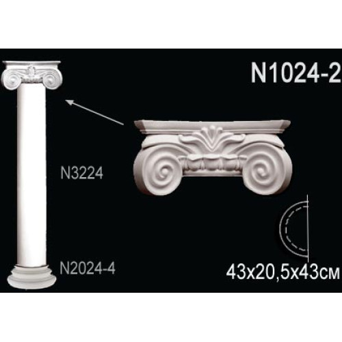 Капитель полуколонны N1024-2 из полиуретана Перфект Характеристики товара: Материал - из полиуретана. Высота - 21.5. Глубина - 20.5. Под покраску - Да. Коллекция - Перфект. Внешний диаметр - 43..
