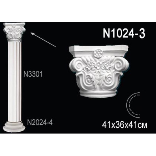 Капитель полуколонны N1024-3 из полиуретана Перфект Характеристики товара: Материал - из полиуретана. Высота - 20.5. Глубина - 36. Под покраску - Да. Коллекция - Перфект. Внешний диаметр - 41..