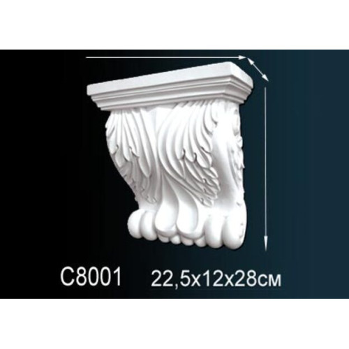 Кронштейн декоративный из полиуретана C8001 Перфект Консоль или кронштейн — стильные и функциональные элемент интерьера. Полимерные декоративные детали, выполненные в классическом стиле с изящным рельефом — роскошь оформления и поддержка для полочек, цветочных горшков или комнатных скульптур. Модели Перфект сочетают в себе легкость и прочность. Декоративные элементы монтируются на поверхности с помощью клея, служат долго, не боятся механических повреждений. Консоли и кронштейны — акцентные детали в дизайне, тонкость и элегантность интерьерной композиции. Характеристики товара: Материал - из полиуретана. Высота - 28. ширина - 22.2. Глубина - 11. Под покраску - Да. Коллекция - Перфект..