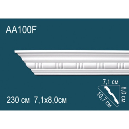 Гибкий потолочный плинтус AA100F Перфект Гибкий потолочный карниз предназначен для оформления стыка потолка и стены на радиусных стенах. Благодаря использованию особого материала его можно гнуть внутрь и наружу без риска поломки или появления трещин. Галтель подходит для установки на криволинейные поверхности и гипсокартонные декоративные конструкции сложной формы. Производитель предлагает изделия с различным дизайном. К каждой гибкой галтели предусмотрен жесткий аналог с таким же внешним видом. К данному потолочному плинтусу подходит AA100. Это дает возможность создать в комнате единую композицию по всему периметру. Карниз можно клеить в любых жилых и технических помещениях. Материал хорошо переносит высокую влажность и температурные колебания, поэтому подходит для эксплуатации на кухнях, в ванных, на верандах и застекленных балконах. Компания ООО «ПЕРФЕКТ» являясь импортером гибких карнизов (плинтусов) АA100F из Китая, может предложить выгодные условия сотрудничества не только оптовым партнерам, но и розничным клиентам, желающих купить оригинальную продукцию. Характеристики товара: Материал - из полиуретана. Длина (см) - 240. Под покраску - Да. Коллекция - Перфект. Рисунок - Да. Высота по стене (см) - 8. Ширина по потолку (см) - 7.1..