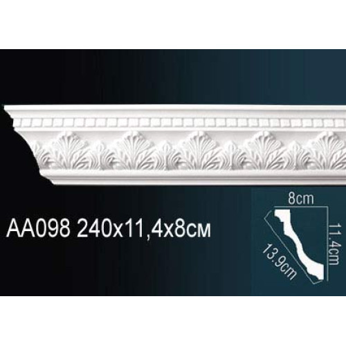 Плинтус на потолок AA098 Перфект Карниз потолочный полиуретановый с рисунком применяется для украшения помещений. Основное назначение этого элемента — декорирование места стыка стены и потолка. Им можно замаскировать неровности отделки и сделать плавный переход между отделочными материалами. Плинтус... →