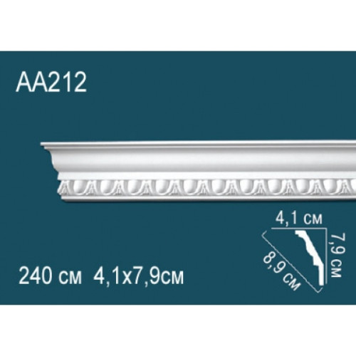 Плинтус на потолок AA212 Перфект Карниз потолочный полиуретановый с рисунком применяется для украшения помещений. Основное назначение этого элемента — декорирование места стыка стены и потолка. Им можно замаскировать неровности отделки и сделать плавный переход между отделочными материалами. Плинтус... →