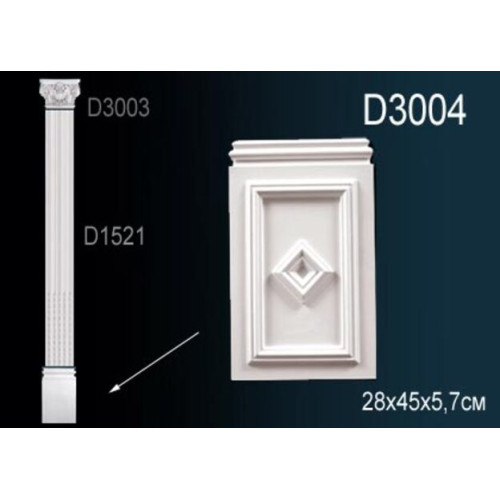Обрамление дверных проёмов (Основание) D3004 Перфект Характеристики товара: Материал - из полиуретана. Высота - 45. ширина - 28. Толщина (см) - 5.7. Под покраску - Да. Коллекция - Перфект..