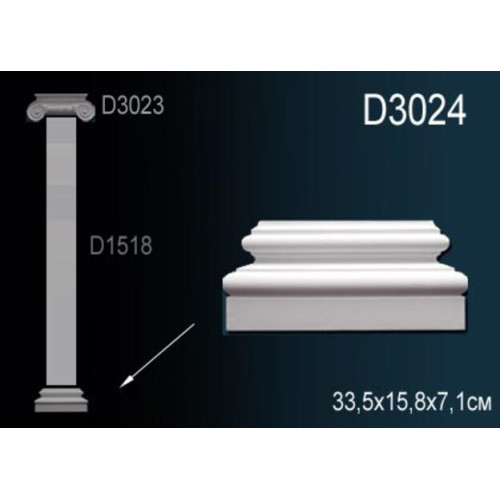 Обрамление дверных проёмов (Основание) D3024 Перфект Характеристики товара: Материал - из полиуретана. Высота - 15.2. ширина - 33.5. Толщина (см) - 7.1. Под покраску - Да. Коллекция - Перфект..