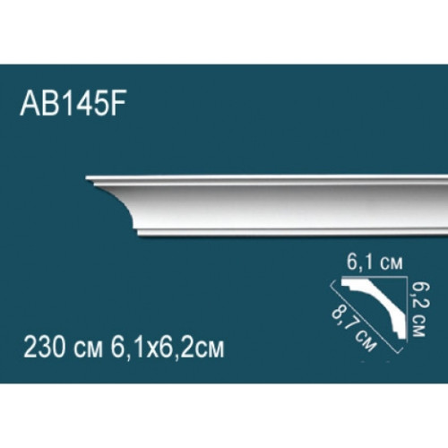 Гибкий плинтус для потолка AB145F Перфект Гибкий потолочный карниз предназначен для оформления стыка потолка и стены на радиусных стенах. Благодаря использованию особого материала его можно гнуть внутрь и наружу без риска поломки или появления трещин. Галтель подходит для установки на криволинейные поверхности и гипсокартонные декоративные конструкции сложной формы. Производитель предлагает изделия с различным дизайном. К каждой гибкой галтели предусмотрен жесткий аналог с таким же внешним видом. К данному потолочному плинтусу парой служит AB145. Это дает возможность создать в комнате единую композицию по всему периметру. Карниз можно клеить в любых жилых и технических помещениях. Материал хорошо переносит высокую влажность и температурные колебания, поэтому подходит для эксплуатации на кухнях, в ванных, на верандах и застекленных балконах. Компания ООО «ПЕРФЕКТ» являясь поставщиком гибких карнизов (плинтусов) АВ145 Flex из Китая, может предложить выгодные условия сотрудничества не только оптовым партнерам, но и розничным клиентам, желающих купить оригинальную продукцию. Характеристики товара: Материал - из полиуретана. Длина (см) - 240. Под покраску - Да. Коллекция - Перфект. Высота по стене (см) - 6.2. Ширина по потолку (см) - 6.1..