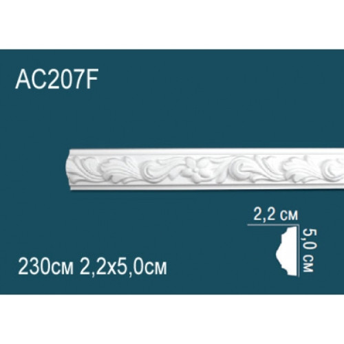 Гибкий молдинг полиуретановый с рисунком AC207F Гибкий молдинг из полиуретана AC207F используется для декорирования радиусных стен и потолков, перекрытия стыковочных мест у обоев. Его главное достоинство — способность адаптироваться к изогнутым поверхностям. Модель подходит для декорирования арок, колонн, овальных потолков, оформления криволинейных поверхностей. Материал легко гнется в плоскости, что позволяет без труда оформлять круглые структуры. Для каждой плоскости существуют определенные ограничения по радиусу изгиба, которые можно найти в специальной таблице гибкости молдингов. Характеристики товара: Материал - из полиуретана. ширина - 5. Толщина (см) - 2.2. Длина (см) - 230. Под покраску - Да. Коллекция - Перфект. Рисунок - Да..