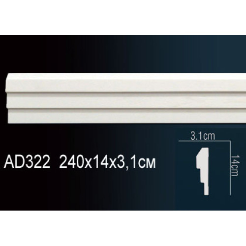 Молдинги для стен AD322 из полиуретана Молдинг из полиуретана — это декоративный элемент, используемый при оформлении интерьеров. Отличается гладкой, ровной поверхностью, которую можно окрашивать. Полиуретановая модель превосходит традиционные деревянные или гипсовые молдинги благодаря высокой влагостойкости, долговечности и устойчивости к насекомым. Они легко монтируются на стены или потолки при помощи специального клея из линейки Перфект. Прекрасно смотрятся как в классических, так и современных интерьерах. Характеристики товара: Материал - из полиуретана. ширина - 14. Толщина (см) - 3.2. Длина (см) - 240. Под покраску - Да. Коллекция - Перфект. Рисунок - Нет..