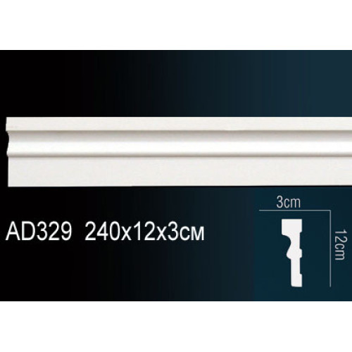 Молдинги для стен AD329 из полиуретана Молдинг из полиуретана — это декоративный элемент, используемый при оформлении интерьеров. Отличается гладкой, ровной поверхностью, которую можно окрашивать. Полиуретановая модель превосходит традиционные деревянные или гипсовые молдинги благодаря высокой влагостойкости, долговечности и устойчивости к насекомым. Они легко монтируются на стены или потолки при помощи специального клея из линейки Перфект. Прекрасно смотрятся как в классических, так и современных интерьерах. Характеристики товара: Материал - из полиуретана. ширина - 12. Толщина (см) - 3. Длина (см) - 240. Под покраску - Да. Коллекция - Перфект. Рисунок - Нет..