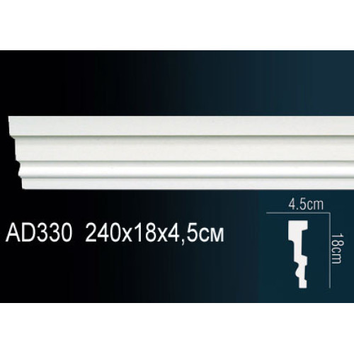 Молдинги для стен AD330 из полиуретана Молдинг из полиуретана — это декоративный элемент, используемый при оформлении интерьеров. Отличается гладкой, ровной поверхностью, которую можно окрашивать. Полиуретановая модель превосходит традиционные деревянные или гипсовые молдинги благодаря высокой влагостойкости, долговечности и устойчивости к насекомым. Они легко монтируются на стены или потолки при помощи специального клея из линейки Перфект. Прекрасно смотрятся как в классических, так и современных интерьерах. Характеристики товара: Материал - из полиуретана. ширина - 18. Толщина (см) - 4.7. Длина (см) - 240. Под покраску - Да. Коллекция - Перфект. Рисунок - Нет..