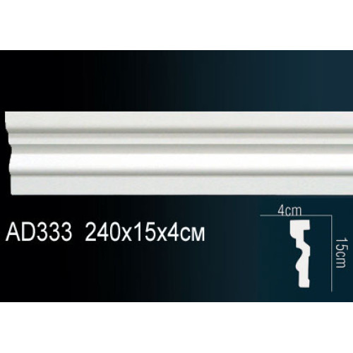 Молдинги для стен AD333 из полиуретана Молдинг из полиуретана — это декоративный элемент, используемый при оформлении интерьеров. Отличается гладкой, ровной поверхностью, которую можно окрашивать. Полиуретановая модель превосходит традиционные деревянные или гипсовые молдинги благодаря высокой влагостойкости, долговечности и устойчивости к насекомым. Они легко монтируются на стены или потолки при помощи специального клея из линейки Перфект. Прекрасно смотрятся как в классических, так и современных интерьерах. Характеристики товара: Материал - из полиуретана. ширина - 15. Толщина (см) - 4. Длина (см) - 240. Под покраску - Да. Коллекция - Перфект. Рисунок - Нет..