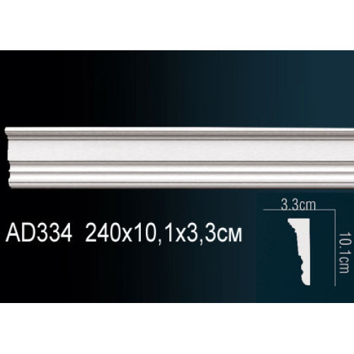 Молдинги для стен AD334 из полиуретана Молдинг из полиуретана — это декоративный элемент, используемый при оформлении интерьеров. Отличается гладкой, ровной поверхностью, которую можно окрашивать. Полиуретановая модель превосходит традиционные деревянные или гипсовые молдинги благодаря высокой влагостойкости, долговечности и устойчивости к насекомым. Они легко монтируются на стены или потолки при помощи специального клея из линейки Перфект. Прекрасно смотрятся как в классических, так и современных интерьерах. Характеристики товара: Материал - из полиуретана. ширина - 10.1. Толщина (см) - 3.3. Длина (см) - 240. Под покраску - Да. Коллекция - Перфект. Рисунок - Нет..