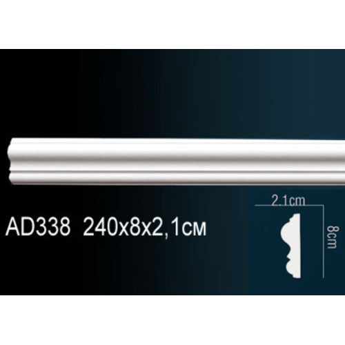 Молдинг из полиуретана AD338 Молдинг из полиуретана — это декоративный элемент, используемый при оформлении интерьеров. Отличается гладкой, ровной поверхностью, которую можно окрашивать. Полиуретановая модель превосходит традиционные деревянные или гипсовые молдинги благодаря высокой влагостойкости, долговечности и устойчивости к насекомым. Они легко монтируются на стены или потолки при помощи специального клея из линейки Перфект. Прекрасно смотрятся как в классических, так и современных интерьерах. Характеристики товара: Материал - из полиуретана. ширина - 8.2. Толщина (см) - 2.2. Длина (см) - 240. Под покраску - Да. Коллекция - Перфект..