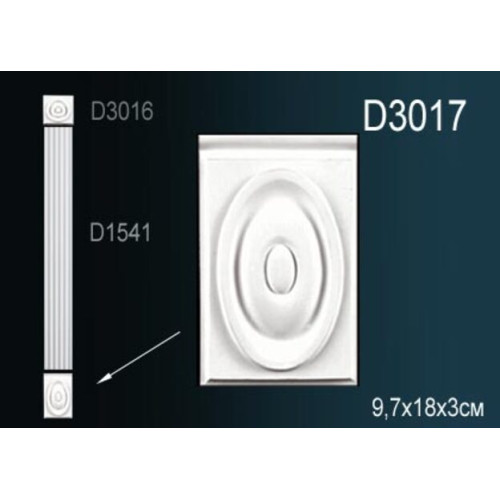 Обрамление дверных и оконных проемов D3017 Перфект Характеристики товара: Материал - из полиуретана. Высота - 18. ширина - 9.7. Толщина (см) - 3. Под покраску - Да. Коллекция - Перфект..