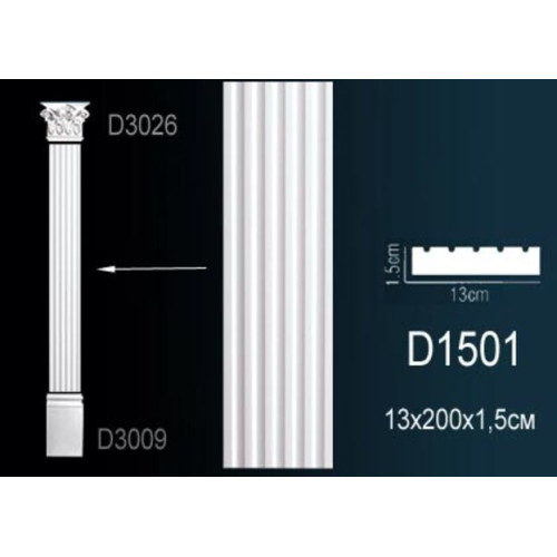 Обрамление дверных проёмов (Пилястра) D1501 Перфект Элегантные пилястры из полиуретана — выгодное решение для придания изысканности вашему интерьеру. Имитируя классическую каменную резьбу, элементы сочетают в себе величие традиционной архитектуры и современные технологии. Простота установки, водостойкость и устойчивость к вредителям делают полимерные пилястры идеальным выбором для долговечного украшения стен. Изделия можно окрашивать в любой оттенок. Поэтому они легко вписываются даже в самый сложный дизайн интерьера, гарантируя атмосферу роскоши без значительных затрат и сложного обслуживания. Характеристики товара: Материал - из полиуретана. Высота - 200. ширина - 13. Толщина (см) - 1.5. Под покраску - Да. Коллекция - Перфект..