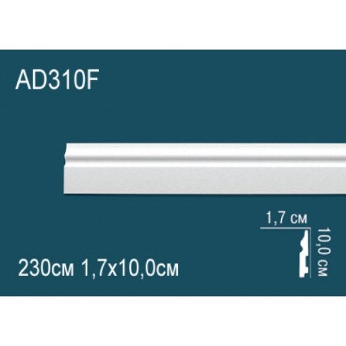 Гибкий плинтус напольный из полиуретана AD310F Перфект Гибкий напольный плинтус — решение для помещений с радиусными стенами, обрамлением основания колонн, полуколонн и ниш. Это не универсальный вариант для всех случаев: его применение оправдано только в ситуациях, где необходима эластичность, так как стоимость гибкого плинтуса выше, чем у жесткого аналога. Для монтажа гибкой планки AD310F используется специальный клей серии «Перфект». Кроме того, плинтус поддается окраске, что позволяет подобрать идеальный оттенок для гармонии с окружающим интерьером. Характеристики товара: Материал - из полиуретана. Высота - 10. Толщина (см) - 1.7. Длина (см) - 230. Под покраску - Да. Коллекция - Перфект..