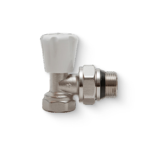Вентиль термостатический угловой-осевой НН 1/2 х 3/4EK, никелированный с разъёмным соединением