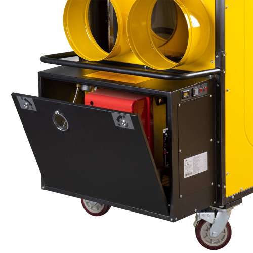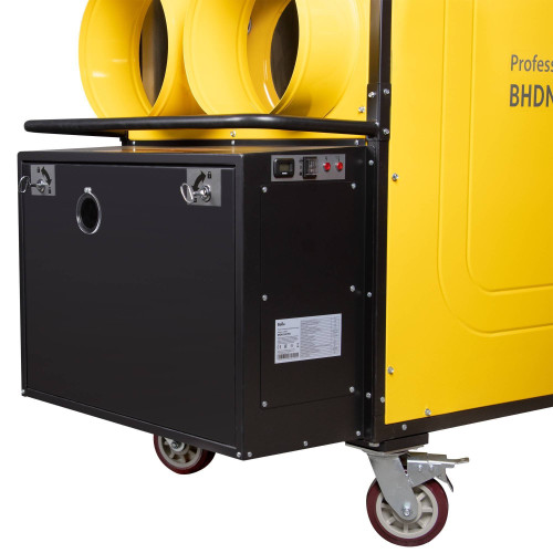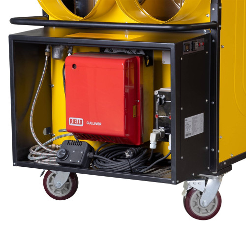 Дизельные теплогенераторы непрямого нагрева Ballu BHDN 185 PRO – это мобильные теплогенераторы, предназначенные для безопасного, надежного и эффективного обогрева помещений средних и больших размеров, в которых требуется стационарная или переносная система отопления. Высокопроизводительные приборы тепловой мощностью 185 кВт применяются на крупных строительных объектах, для обогрева складских цехов, в производственной сфере.В результате сгорания дизельного топлива вырабатывается тепло, которое через металлические стенки камеры сгорания и широкого теплообменника передается воздуху, втягиваемому вентилятором производительностью 14000 м3/ч. Нагретый воздух выбрасывается наружу через выпускную трубу, а дым с продуктами сгорания выводятся через отверстие дымохода.Дизельные теплогенераторы непрямого нагрева BHDN 185 PRO можно использовать внутри помещений при подключении труб дымоотвода с выводом продуктов сгорания наружу здания, в таком случае забор воздуха осуществляется непосредственно из помещения. При использовании прибора на открытом воздухе можно организовать подвод горячего воздуха в помещение или нужную обогреваемую зону через дополнительные трубы воздуховода.Теплогенераторы укомплектованы одноступенчатой горелкой Riello Gulliver, оснащенные системой контроля пламени с фотоэлементом для отключения работы в случае отсутствия горения. Также приборы имеют многоуровневую систему безопасности, которая отключает работу в случае срабатывания регулировочных термостатов, возникновения аварийной ситуации.Вентилятор продолжает работать после выключения теплогенератора некоторое время, охлаждая камеру сгорания и корпус теплообменника, тем самым предотвращая деформацию теплообменника. Топливный фильтр продлевает работу форсунки и обеспечивает бесперебойную работу при условии использования качественного дизельного топлива. Металлический шкаф для горелки и электронного блока имеет уровень пыле- и влагозащиты IP 44. Термоконтроллер в комплектации позволяет поддерживать установленную температуру в обогреваемом помещении.Особенностью прибора является необходимость его подключения к внешнему топливному баку.Отличительные свойства:• Мощный обогрев мощностью 185 кВт• Прочная металлическая рама• Вентилятор осевого типа создает давление в 150 Па• Горелка Riello Gulliver• Возможность подключения 4 труб выпускного воздуховода• Отвод продуктов сгорания• Металлический шкаф с закрытым доступом для защиты горелки, электронного блока и фильтра. IP44• Высокоэффективный трубчатый теплообменник из нержавеющей стали • Система контроля пламени с фотоэлементом• Многоуровневая система безопасности с электронным управлением• Камера сгорания из износостойкой нержавеющей стали• Термоконтроллер в комплектации• Дублирующая панель управления с таймером• Прочные колесаОсновные сферы применения• Строительство:- Просушка после отделки и обогрев помещения во время ремонтных и строительных работ;- Обогрев временных складских и рабочих помещений.• Промышленность:- Обогрев производственных и складских помещений временного хранения;- Дополнительный обогрев логистических центров и терминалов;- Обогрев строительных укрытий и сушка резервуаров всех видов после покраски;- Резервный источник обогрева.• Городское хозяйство, ЖКХ:- Пр