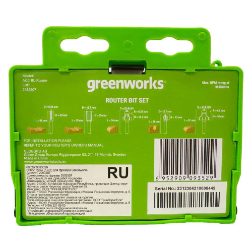 Артикул товара: 2953207 Штрихкод: 6952909093529 Характеристики товара: Страна производства - Китай. Вес товара, г - 400.0000. Набор - Да. Количество в упаковке, шт - 5. Материал обработки - Дерево. Диаметр хвостовика, мм - 6.35. Габариты упаковки, мм - 50х250х250..