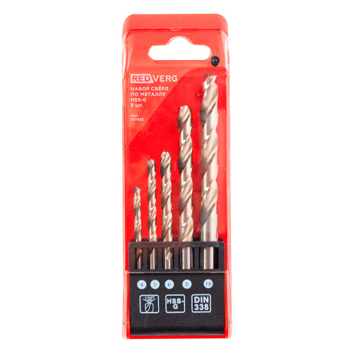 Набор сверл по металлу REDVERG 5 шт HSS-G, 4-10 мм(501032)