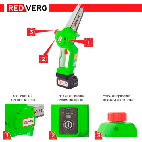 Пила-мини цепная аккумуляторная бесщеточная REDVERG RD-C18BL/U (без акк, без з/у)