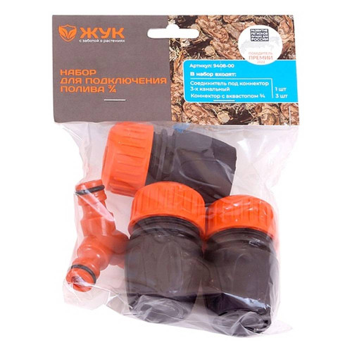 Артикул товара: 9408-00 Штрихкод: 4630035339408 Характеристики товара: Страна производства - --. Набор - Да. Диаметр соединения, дюйм - 3/4. Диаметр шланга, дюйм - 3/4. Габариты упаковки, мм - 30х90х100..