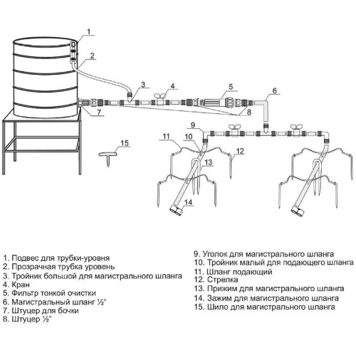 Капельный полив ЖУК от емкости 60 растений