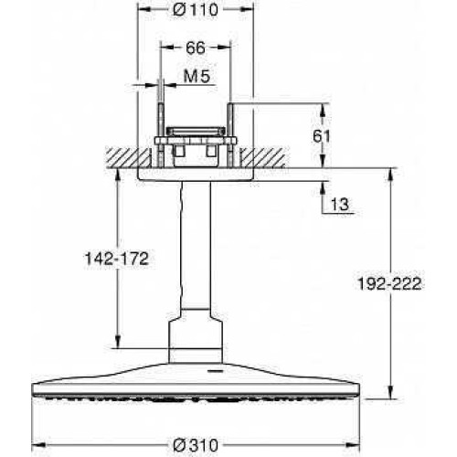 26477000 Rainshower 310 SmartActive Верхний душ с потолочным душевым кронштейном 142 мм, 2 режима струи, хром 26477000