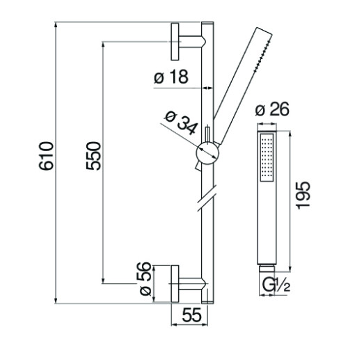 AD140/37FLP душевой гарнитур 60 см 1jet, глянцевый черный AD140/37FLP