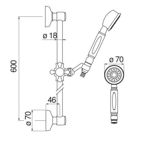 AD140/48GDP душевой гарнитур 60 см 1jet, золото AD140/48GDP