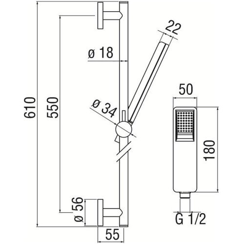 AD140/53WM душевой гарнитур 60 см 1jet (белый) AD140/53WM