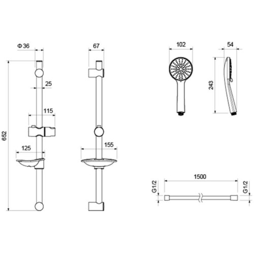 AQ2015MB БЕТТА душевой гарнитур 3jet 60 см, матовый черный AQ2015MB