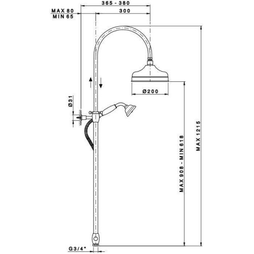 Nicolazzi Doccia Душевая стойка с верхним душем Oslash; 20см, переключателем и ручным душем, цвет: бронза. 5712WSBZ20