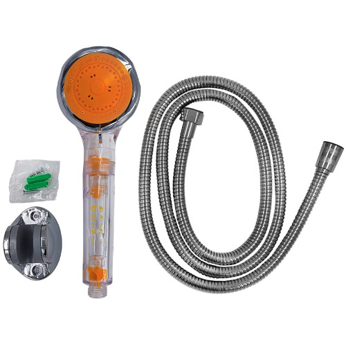Преимущества Эффективная очистка воды минеральными шариками устраняет остаточный хлор и неприятный запах. Улучшение качества воды за счет смягчения и обогащения кислородом, что благотворно влияет на кожу и волосы. Несколько режимов подачи воды с лёгким переключением между ними. Эргономичная лейка обеспечивает комфортный захват. Идеально совместим с водонагревателем AMOR Primoclima. Легкая и понятная установка. Технические характеристики Стандарт подводки — 1/2" Длина шланга: 1.5 метра Габариты лейки: 27х10х8 см Состав комплекта: душевая лейка; шланг; держатель для лейки; крепежный набор. Элементы очистки воды: минеральные шарики. Характеристики товара: Страна производства - Китай. Артикул - SK3..
