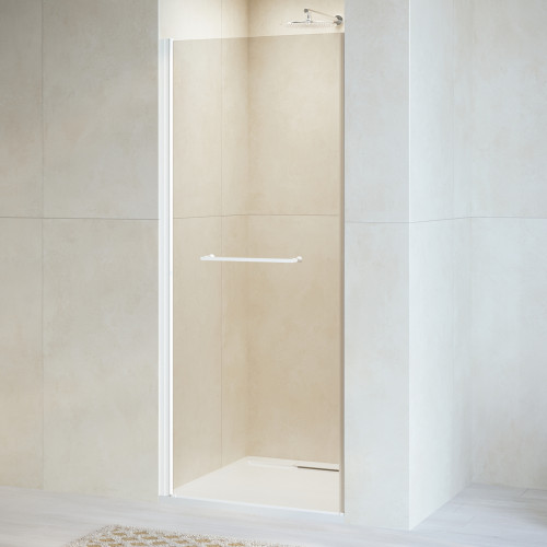Душевая дверь распашная с маятниковой петлей (открытие только наружу). Маятниковые петли с функцией подъема двери. В комплекте нижняя пороговая планка. Стальная ручка - полотенцедержатель. Трап или поддон приобретается отдельно. Характеристики товара: Душевые перегородки и аксесуары - Да..