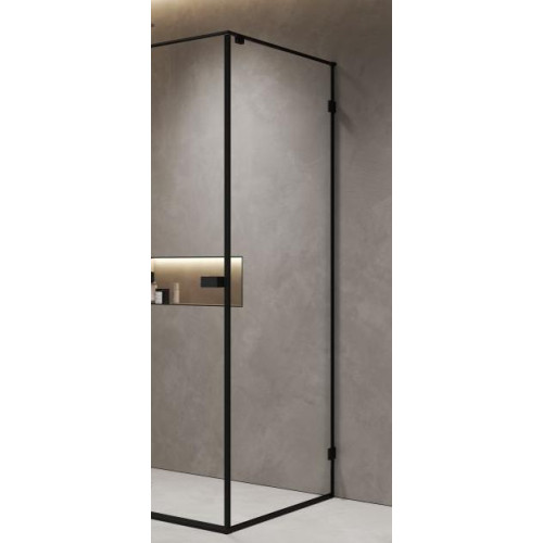 Боковая панель 900х2000 мм, стекло 8 мм, прозрачное, EasyClean, цвет профиля черный матовый AQM7409-2-9