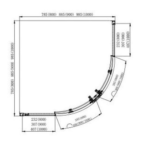 AQ ARI RO 08020BL Душевой уголок 1/4 круга, двери раздвижные 800x800x2000, профиль черный, стекло прозрачное AQ ARI RO 08020BL