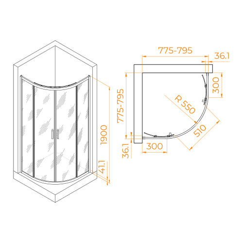 Душевой уголок полукруглый, стеклянный с раздвижными дверями на роликах - RGW PA-51 Полукруглое угловое ограждение из стекла и алюминиевых профилей с двумя раздвижными дверями (открывающимися от центра), оснащено магнитным центральным замком и соответствует 1 классу герметичности. Душевой угол, по потребности, доукомплектовывается поддоном для душа и применяется как изделие, заменяющее душевую кабину. Полукруглая форма душевого угла делает эту конструкцию универсальной для всевозможных планировок ванных комнат. Стильное и добротное изделие душевого уголка - выгодное приобретение в ваш дом. Рекомендации по установке: Оптимальный вариант — монтаж на душевой поддон. Возможна замена поддона на подиум с душевым трапом (лотком для сбора воды) и облицовкой мокрой зоны керамической плиткой. Важно! Поскольку модель изначально предназначена для установки на душевой поддон, её габариты основания соответствуют стандартным размерам поддонов. При монтаже на подиум необходимо учитывать этот нюанс. Желательно при установке на душевой поддон подбирать модели одного производителя. Основные особенности конструкции: Высокое полукруглое стеклянное ограждение Радиус угла: R-550 мм (евростандарт) Форма душевой зоны: ¼ круга Алюминиевый каркас по всему корпусу душевого угла Регулировка профилем размерного соответствия Конструкция: 4 стеклянных полотна: 2 стационарных 2 раздвижных двери (открываются от центра) Двойные подшипниковые ролики обеспечивают плавное и бесшумное движение С внешней стороны две вертикальные ручки типа «скоба» с крючком для полотенца – удобны в использовании С внутренней стороны две стальные ручки-кноб, за счёт компактной формы ручек внутри душевой больше свободного пространства Герметичность и регулировка: Магнитный замок в силиконовом профиле – надежная герметизация входа Регулируемый алюминиевый профиль компенсирует неровности стен Совместимость: Душевые поддоны: RGW ST/R, STYLE P Душевые стойки: RGW SP-24, SP-25, SP-26 Душевые трапы: RGW SDR-10, SDR - 08 (возможна интеграция других моделей) Преимущества: Устойчивость к влаге и долговечность Эстетичный дизайн, подходящий для современных ванных комнат Простота монтажа и обслуживания Механизм и принцип работы Раздвижной механизм «Sliding Door» разработан немецкими инженерами эксклюзивно для компании RGW «Стильные Душевые», этот инновационный механизм обеспечивает плавную и бесшумную работу дверей. Конструктивные особенности: Двойные усиленные подшипниковых роликов на каждом креплении, перемещающихся в П-образных верхнем и нижнем направляющих Пружинный механизм двойных нижних роликов обеспечивает их легкое извлечение из профиля, упрощая обработку от загрязнений Встроенный амортизирующий фиксатор, смягчающий удар при полном открытии двери Антикоррозийное покрытие всех металлических компонентов Все элементы конструкции (профиль, крепление роликов, стальные ручки) имеют определённый тип усиления, за счёт данных инженерных решений душевой угол обладает повышенным запасом прочности и долговечности и рассчитан на активную эксплуатацию Преимущества системы: Высокая надежность и безотказность работы Плавный ход без рывков и заеданий Устойчивость к влажной среде душевых помещений Долгий срок службы даже при интенсивной эксплуатации Технические характеристики: Максимальная 