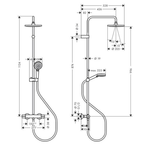 26318000 HG Vernis Blend Showerpipe 200 термостатическая душевая система 26318000