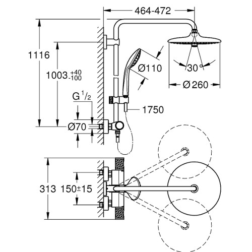 27615002 Euphoria 260 Душевая система с термостатом для душа, 9.5 л/мин, хром (замена 27615001) 27615002