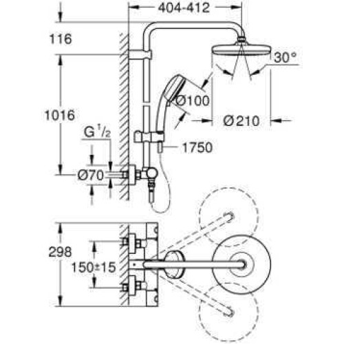 27922001 Tempesta Cosmopolitan 210 Душевая система с термостатическим смесителем, хром 27922001