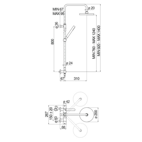 VE125030/50CR VELIS термостатическая душевая система, верхний душ 20 см VE125030/50CR