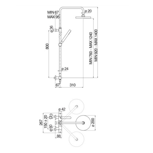 VE125030/50FLP VELIS термостатическая душевая система, верхний душ 20 см, глянцевый черный VE125030/50FLP