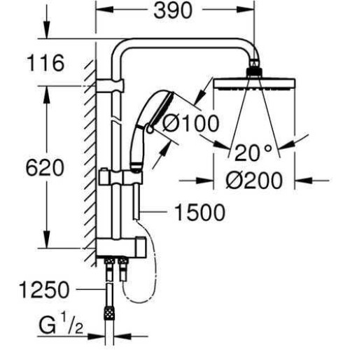 27399002 Tempesta New Rustic 200 Душевая система с переключателем (без смесителя), хром 27399002