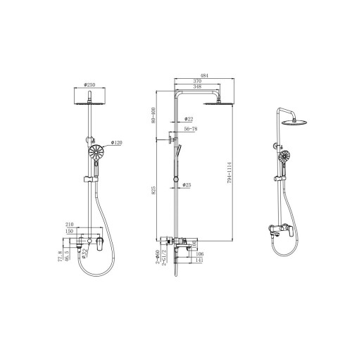 AQ2040MB ВЕГА душевая система (смеситель для ванны) 3jet 250мм, матовый черный AQ2040MB