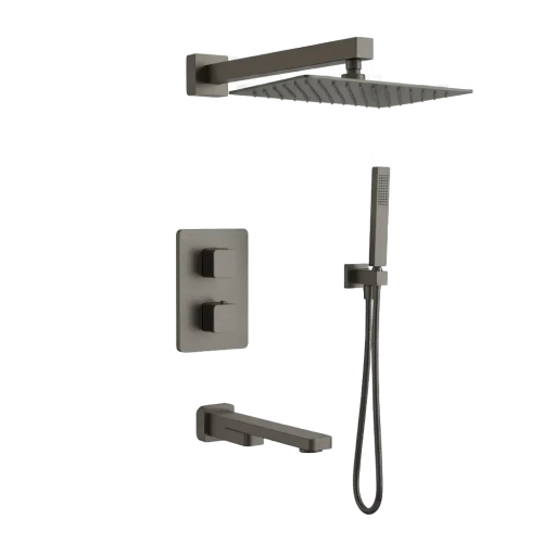 AQM8412GM Savona Набор с терм. для компл. ванны с изливом, верхним и ручн. душем, цвет металл AQM8412GM