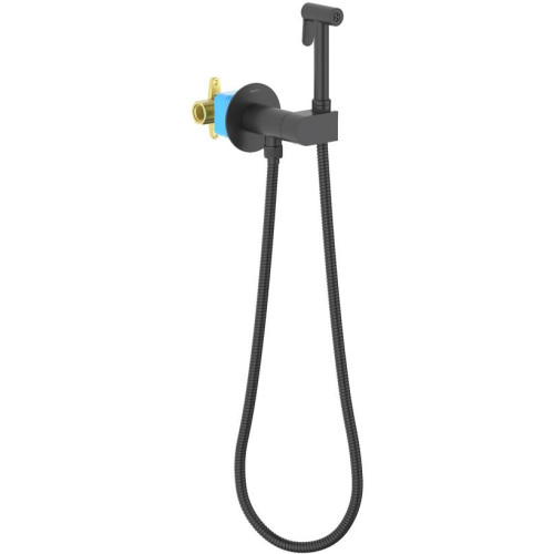 AQ1024MB ОБЕРОН комплект для гигиенического душа встроенный (смеситель c прогрессивным картриджем + гигиеническая лейка + шланг), матовый черный AQ1024MB