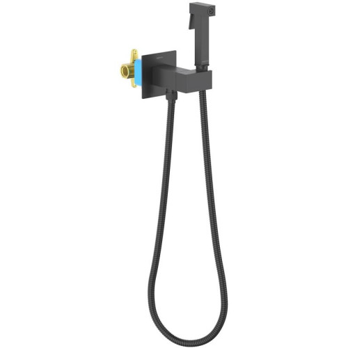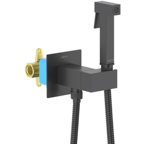 AQ1025MB ЛИРА комплект для гигиенического душа встроенный (смеситель c прогрессивным картриджем + гигиеническая лейка + шланг), матовый черный AQ1025MB